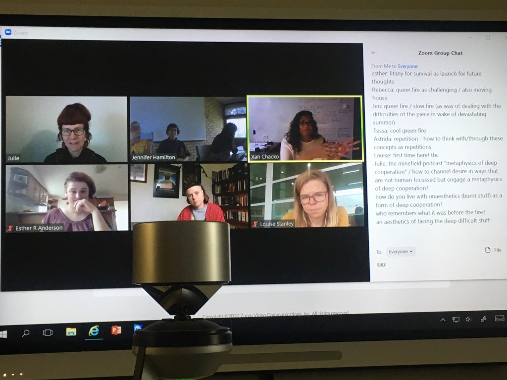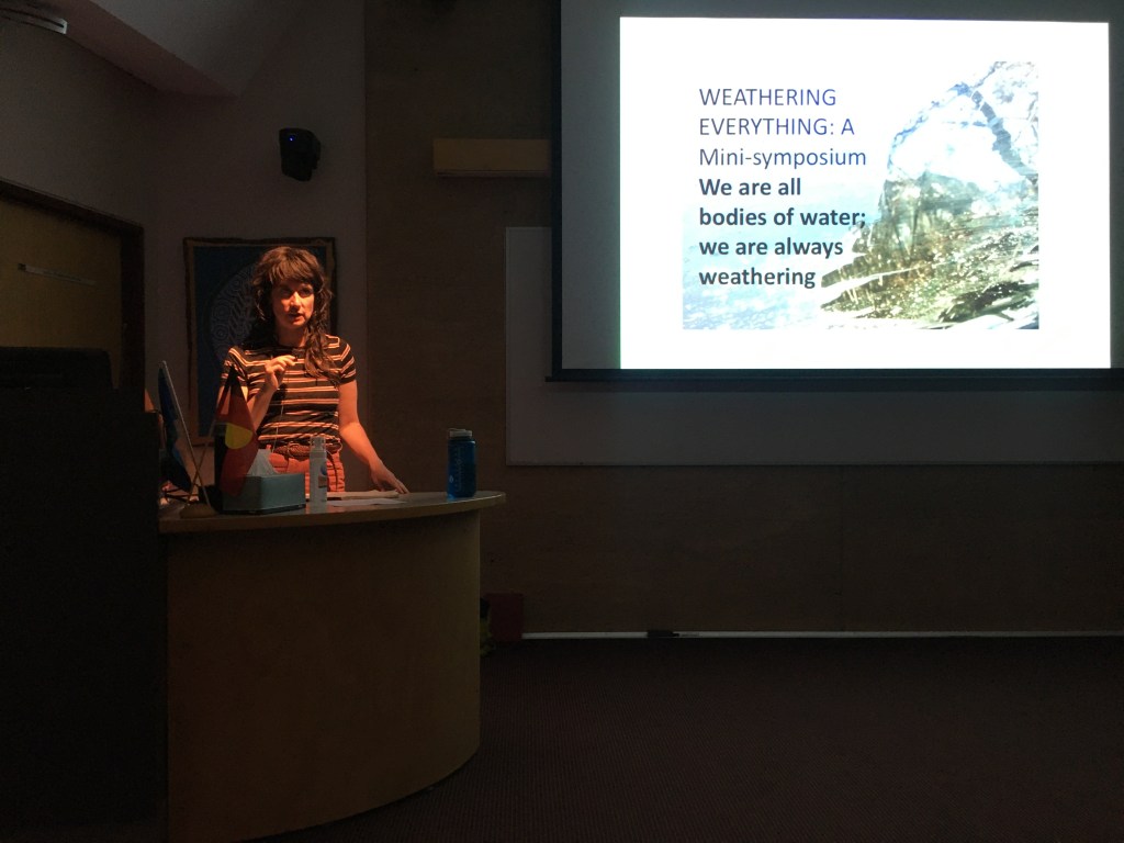 Weathering Everything: A Mini-Symposium was on the 3rd and 4th March in 2020. Weathering is a concept that names the embodied experience of weather over time, and in focusing on duration, accumulation and repetition, weathering links bodies to climate change. Weathering also names bodily difference as we all weather the world differently. The recent events of summer 2019-2020 and the exclamations that 2020 be “cancelled” as a year meant that the non-specific mandate of the weathering collective’s activities came into its own. Which is to say, “we are always weathering”. And we are always weathering everything. That said there are specific ethical orientations to our work we want to take serious.