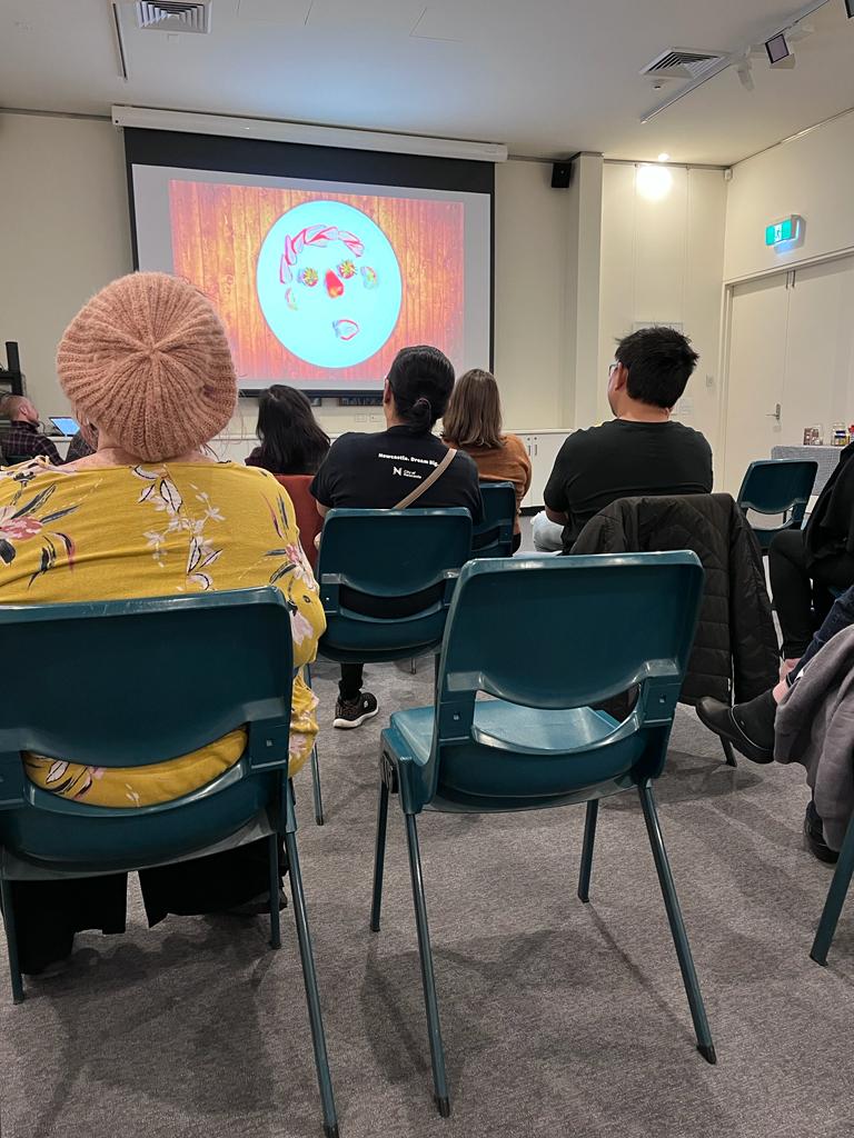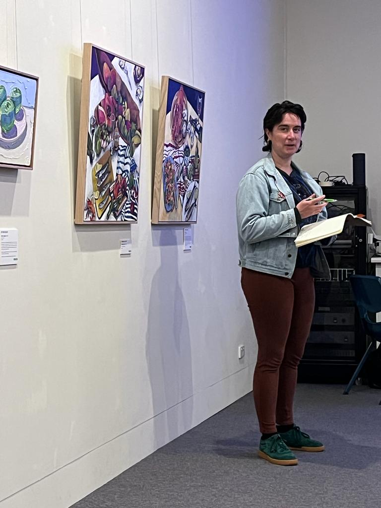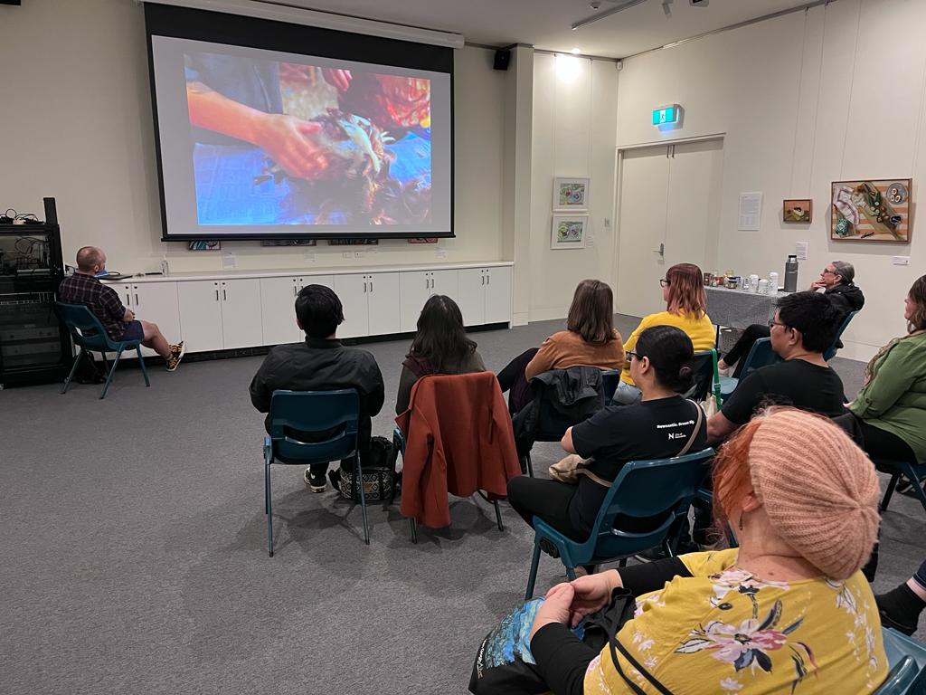at 11am on APRIL 29 2023 in the Mazda gallery, amidst paintings of apples and charcuterie, there WAS A screening of some food-related films and a discussion. The screening includeD A few very short films including Craig Boreham’s film ‘Autumn Farm’, Sam Doyon and Morgan Way’s ‘The Weedy One’, SIQI SONG’s FOod and .