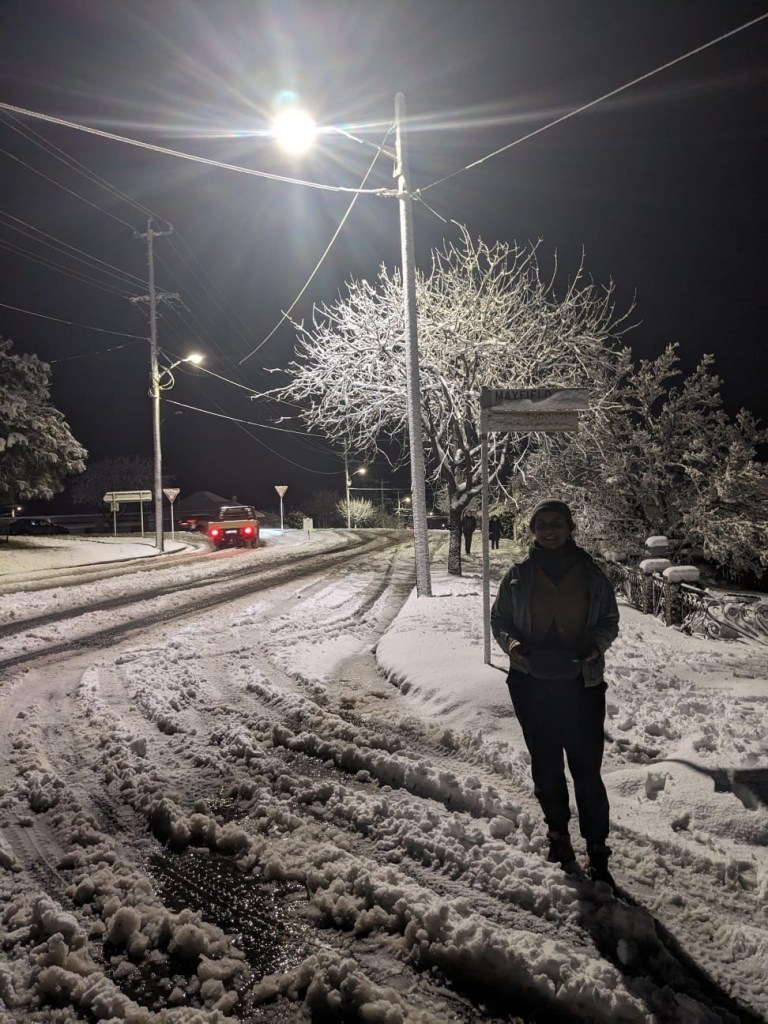 Armidale had an epic snow day on August 2 of 2025. It feels important to write about how I think about snow days in relation climate change adaptation, because my weathering station is all about considering how a different kind of human-weather relationship could lead to a different kind of climate change adaptation. The snow day was one of my earlier forays into this kind of thinking.